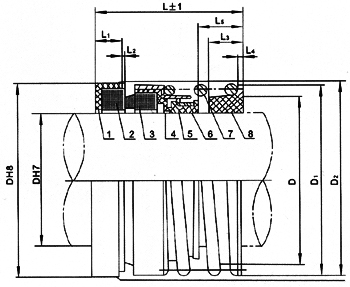 本系列結構屬內裝、內流、單端面、單彈簧非平衡型,適用于各種離心泵及其類似機械旋轉軸的密封。