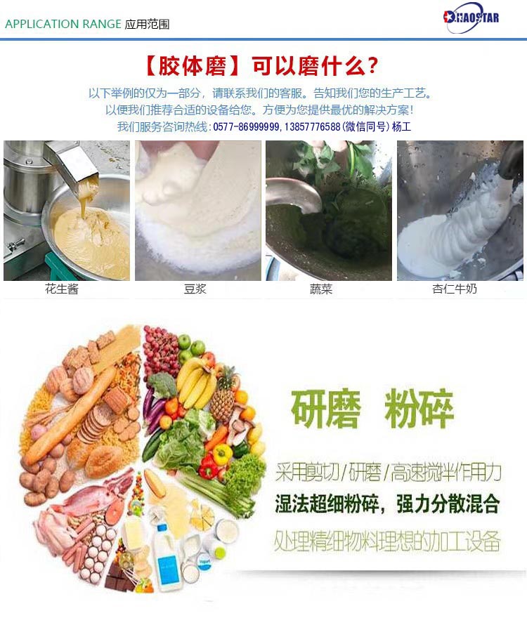 f.昊星膠體磨系列可按照客戶對加工物料的酸度、堿度、濃稠度等要求特殊定制生產。有此需要的客戶請提供詳細的技術參數。